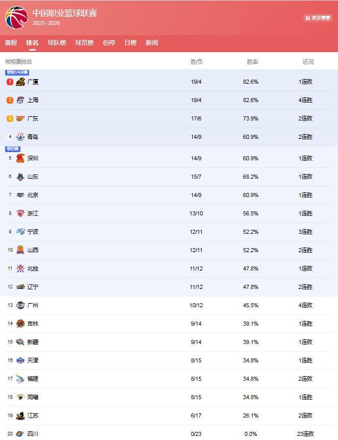 CBA最新排名: